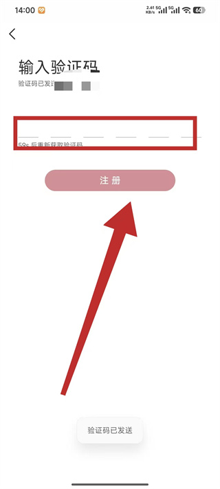 5、在输入验证码页面,填写收到的短信验证码,点击注册,完成账号登录,之后可继续操作商品购买等功能。