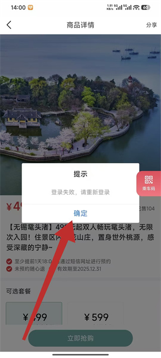 3、若弹出“登录失败,请重新登录”的提示弹窗,点击确定,进入登录流程。