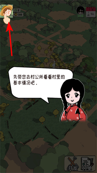 3、完成剧情引导后,点击底部的开发按钮,可进入村庄的开发界面,规划土地、建设设施,提升产值与资源产出。