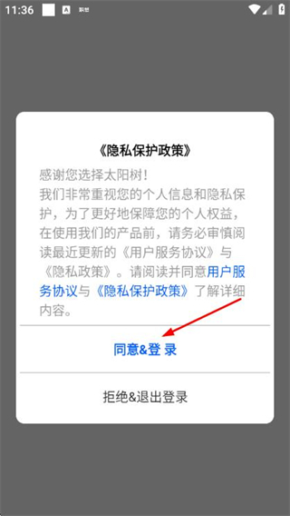 1、在使用协议隐私政策弹窗中点击同意按钮,进入登录页面。