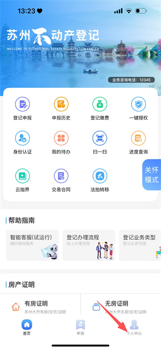 1、在苏州不动产登记首页,点击底部个人中心,进入苏易登的登录页面。