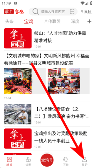 1、打开掌上宝鸡,点击底部的我的,进入我的页面。