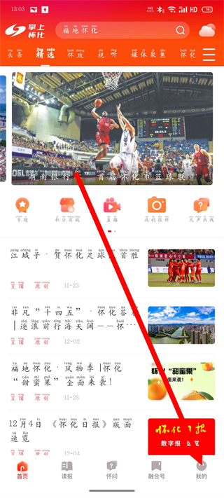 1、打开掌上怀化,点击底部的我的,进入个人页面。