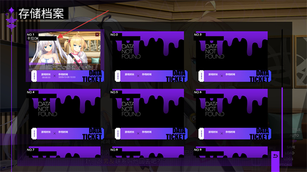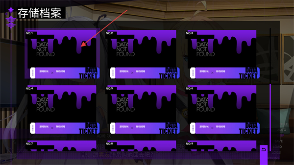 2、打开存储档案界面后,当前显示多个存档位,所有存档位均显示DATANOTFOUND,说明暂无已保存的游戏存档数据。