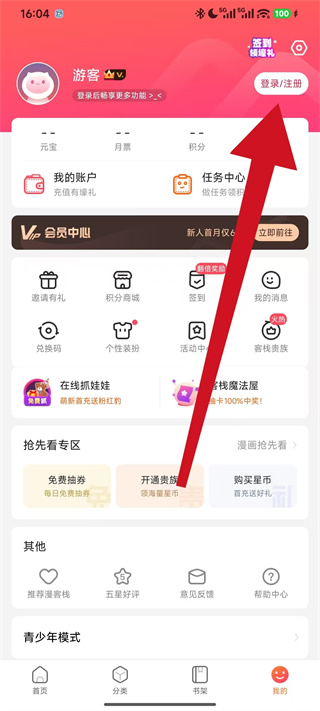 1、打开漫画栈app,点击底部导航栏最右侧的我的,进入个人中心页面。