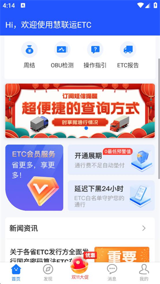 围绕货车ETC与物流运输可信业务设计,功能精准适配货车司机日常运输场景,无冗余功能干扰,专注解决通行、记账、缴费核心痛点。