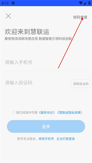 3、在登录选择页面,点击右上角的密码登录,切换到密码登录页面。
