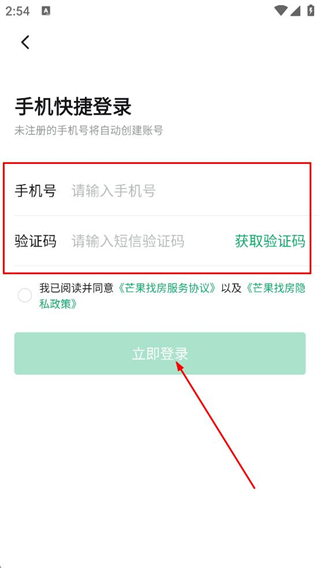 4、在快捷登录页面,填写手机号、验证码,点击立即登录,完成账号登录。