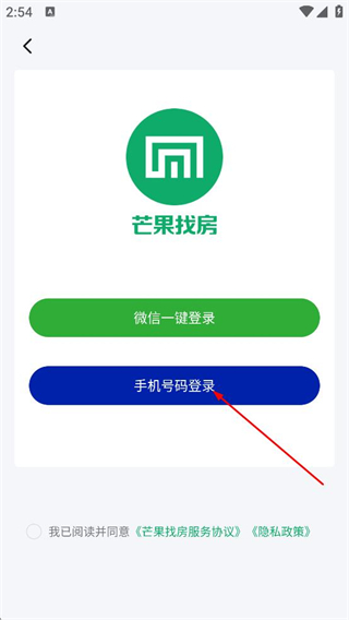 3、在登录选择页面,点击手机号码登录按钮,进入手机快捷登录页面。