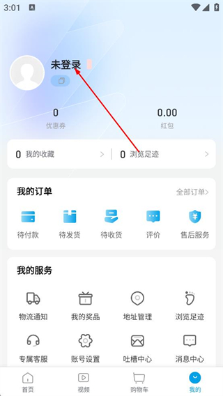 2、在个人页面,点击未登录的区域,进入手机号登录页面。