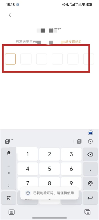 5、在验证码输入页面,将收到的短信验证码输入框中,完成验证后即可自动完成账号注册。