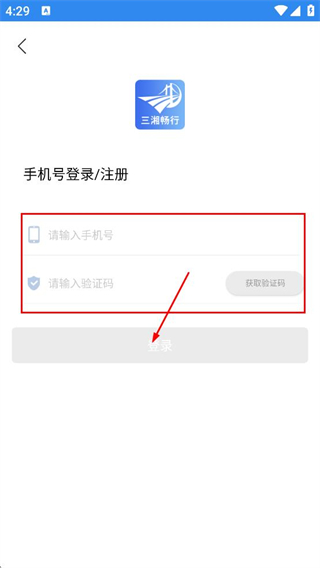 3、在登录/注册页面,填写手机号、验证码,完成账号登录/注册。