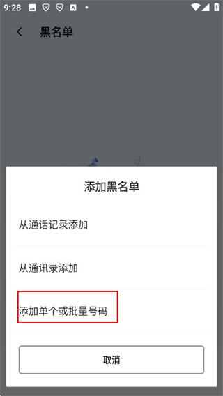 7、在弹窗中,开始添加黑名单号码,即可拦截骚扰电话。