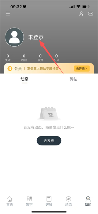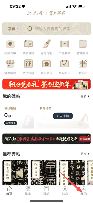 1、在掌上碑帖首页,点击底部我的,进入个人页面。