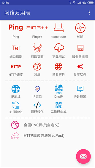 4、实用网络工具集成,包含端口扫描、子网掩码计算、网关查询、DNS切换、Wi-Fi信号强度检测等功能,支持保存常用测试目标,一键快速检测,提升排查效率。