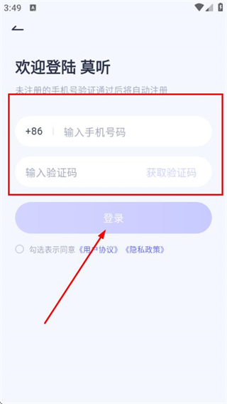 3、在登录页面填写手机号和验证码,勾选协议后,点击登录完成账号登录操作。