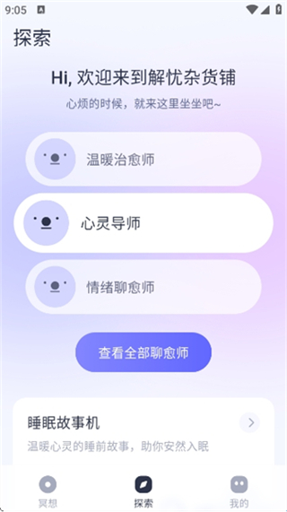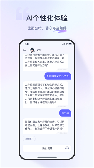 专业资质教练的科学引导,帮助用户突破表层情绪,深度探索内心需求,搭配情景化课程,实现从放松到成长的进阶。