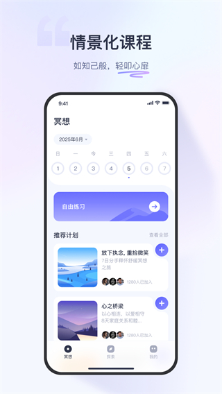 课程围绕不同心理场景设计,结合教练引导与冥想练习,让用户在具体情景中学习调节情绪的方法,实用性更强。