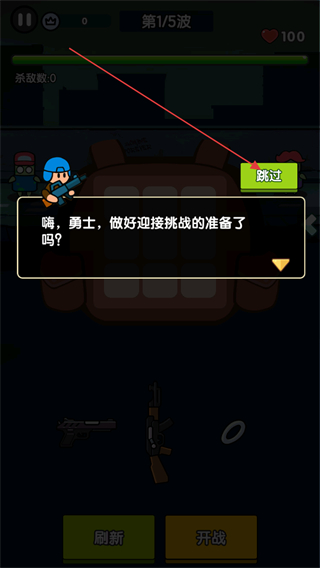 1、进入末世背包游戏后,点击跳过按钮可以跳过新手教程和游戏背景动画。
