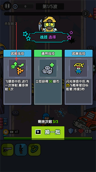 4、在战争中击杀僵尸可以提升角色等级,每提升一级都可以选择一个战技,点击下方的战技进行选择。