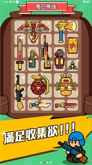 敌人密度随生存时间逐步提升,后期需快速合成高阶武器、灵活走位躲避攻击,紧张的对抗节奏带来强烈的代入感。