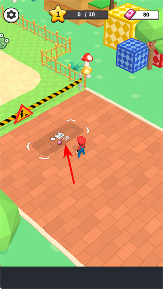 1、在场景中移动角色靠近道具标识区域,可自动收集对应的材料如零件,积累道具数量的同时,推进任务进度如星星计数。