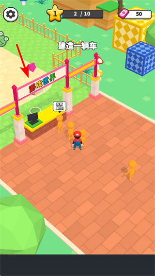 2、根据任务提示如建造一辆车,移动角色前往对应的功能区域如游戏世界入口,触发车辆建造的互动流程,解锁新的玩法内容。