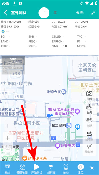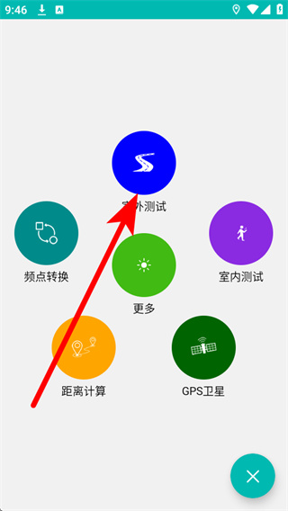 2、在功能页面,点击室外测试,进入室外测试页面。