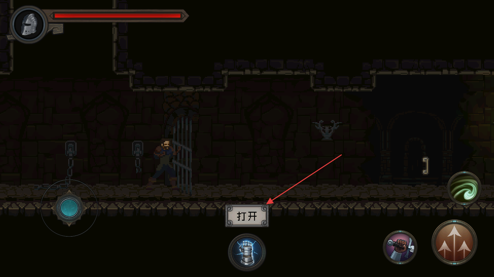 2、遇到闸门类机关时,界面会显示打开按钮,点击该按钮可解锁闸门,打通当前区域与后续场景的连接路径,继续推进探索流程。