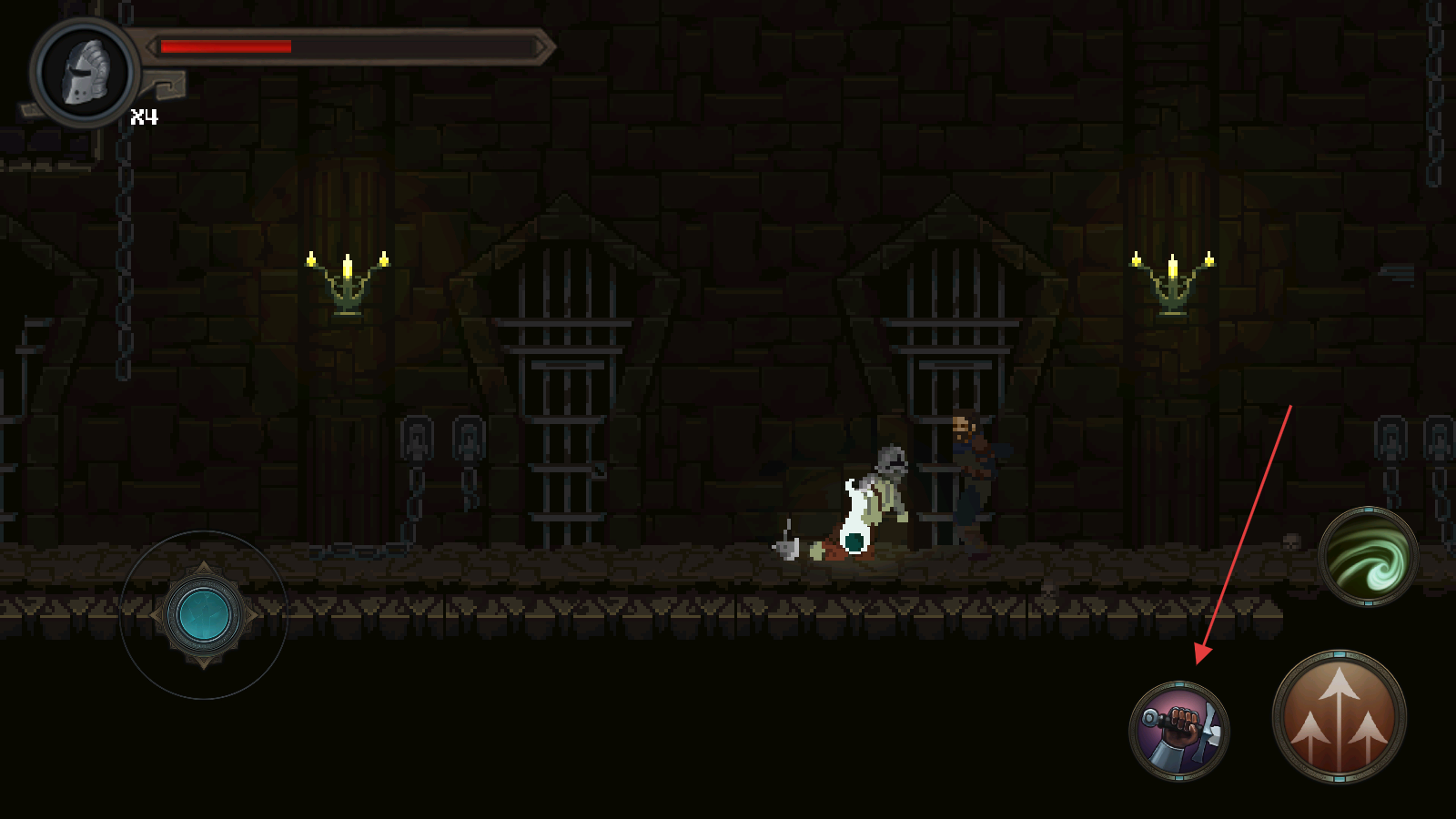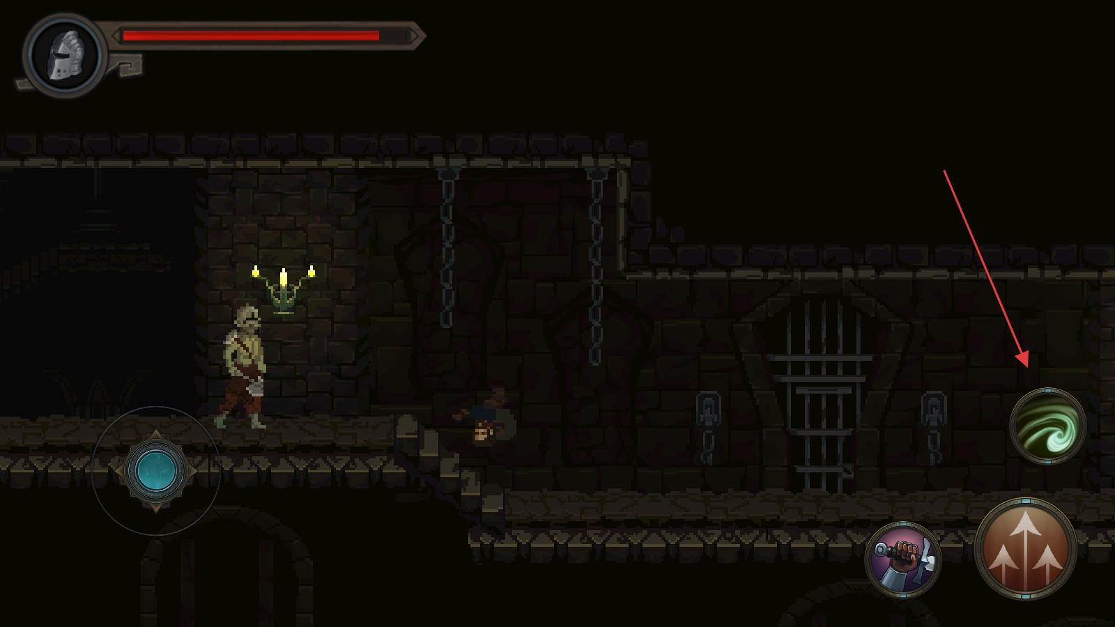 3、操控左侧移动按钮控制角色移动,探索新区域时会遇到怪物敌人,需调整角色位置,靠近敌人准备进入战斗环节,避免被敌人突袭。
