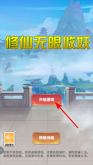 1、在游戏启动界面,点击开始游戏按钮可进入修仙收妖玩法,这是开启修仙冒险的基础操作,后续可体验内容。