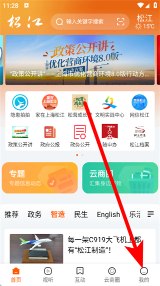 1、打开上海松江客户端,点击底部的我的,进入个人页面。