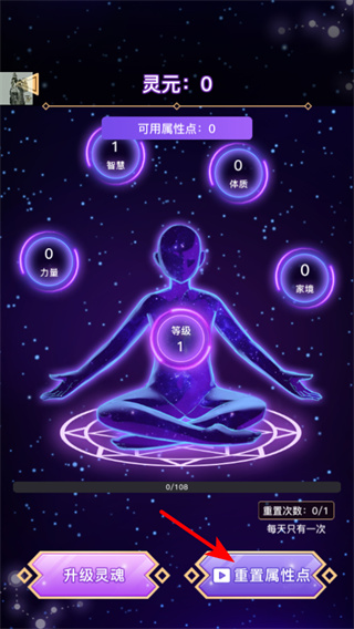1、在灵魂界面,若对当前属性点分配不满意,可点击重置属性点每日限一次,重新分配属性点,调整自身能力方向适配不同转生世界的需求。