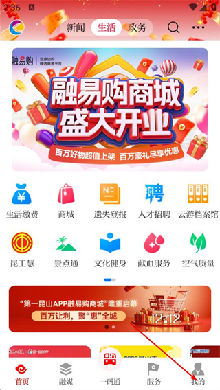 2、在第一昆山首页,点击底部的我的选项,进入我的页面。