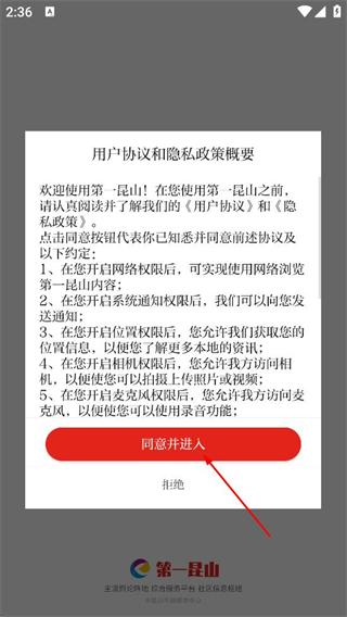 1、在用户协议和隐私政策概要弹窗中,点击同意并进入。
