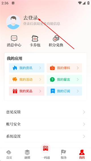3、随后在我的页面,点击去登录,即可进行下一步的操作。