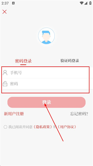 4、在密码登录页面,填写手机号与密码,点击登录,完成登录的操作。
