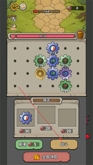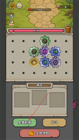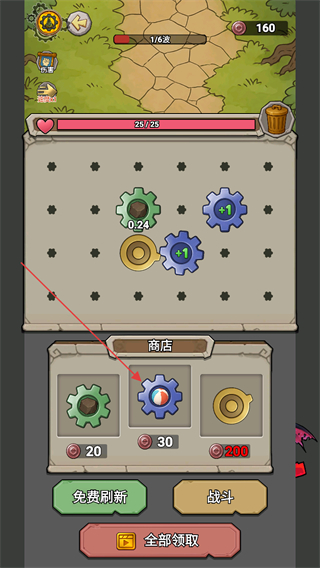3、处于该界面时,可将相同属性的齿轮进行合成升级,同时通过商店的免费刷新更新道具。