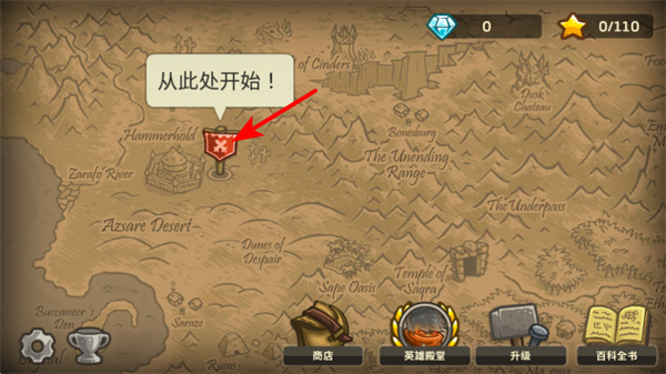 1、在地图界面,点击初始标识点可进入对应关卡的战斗场景,这是开启防御战斗的基础操作,通过建造防御塔抵御敌军进攻。