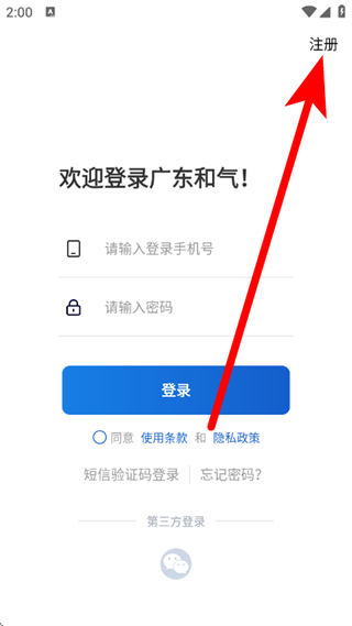 1、打开广东和气,点击底部的我的,进入我的页面。