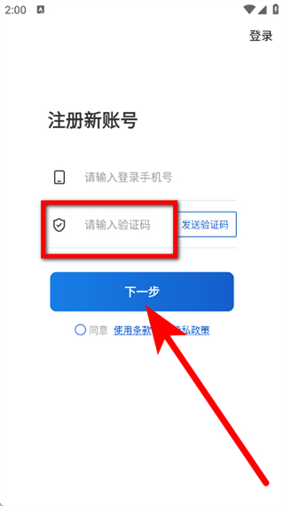 4、输入验证码,勾选协议后,点击下一步,完成账号注册。