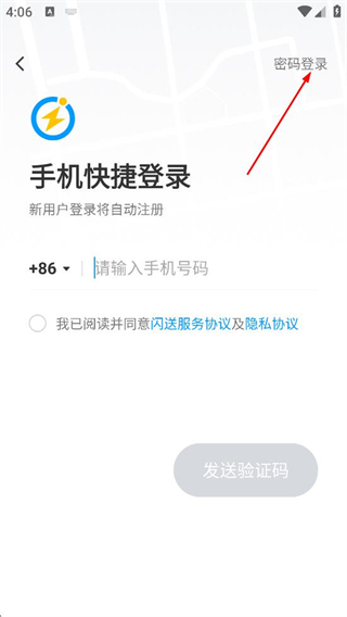2、在手机快捷登录页面,点击右上角的密码登录选项,切换登录方式。