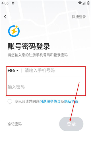 3、在账号密码登录页,填写手机号码与密码,点击登录,完成账号登录。