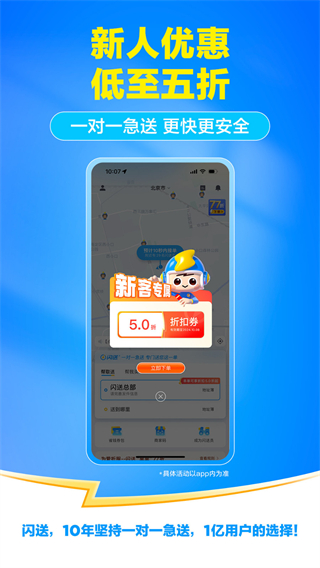 闪送是专为便捷大众生活打造的同城速递服务平台,专注同城即时配送需求,支持各类物品安全寄送,依托高安全性能保障体系让用户安心使用,承诺在指定时间内快速送达,兼顾便捷性与时效性,同时为新人提供专属优惠福利,全方位满足日常应急、生活补给等同城速递需求。