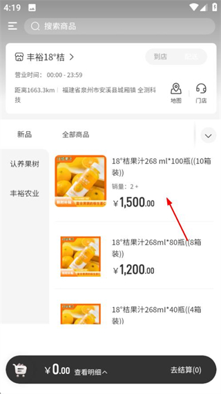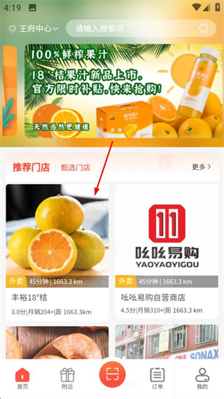1、在吆吆易购首页,点击目标门店,进入门店商品页面。