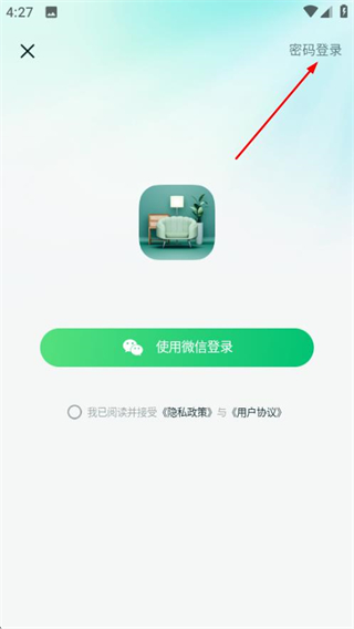 2、在登录选择页面,点击右上角的密码登录选项,进入密码登录页面。