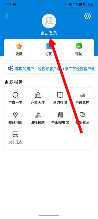 1、打开广东经视频,点击右上角的个人图标,进入个人相关页面。