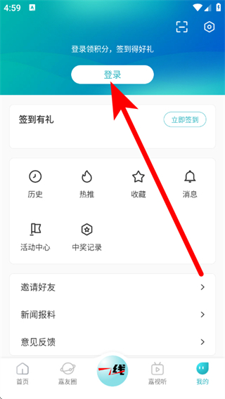 2、在我的页面,点击登录,进入登录选择界面。