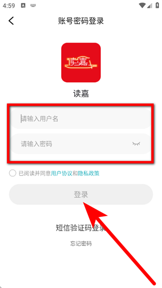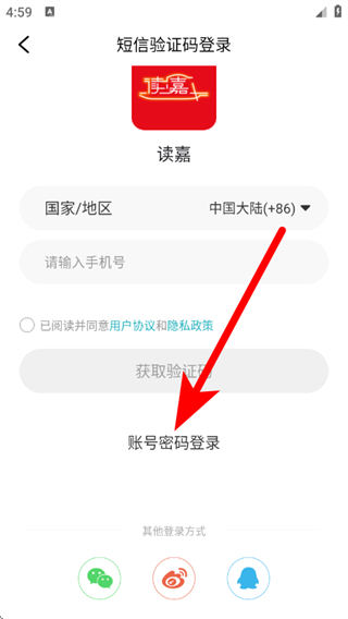 3、在登录界面,点击账号密码登录,进入账号密码填写页面。