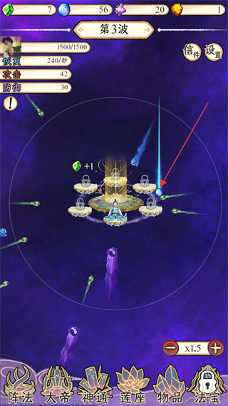 4、在第3波的战斗过程中将倍率调整至×1.5后战斗节奏会加快,点击界面中击败邪魔掉落的蓝色本源进行获取。